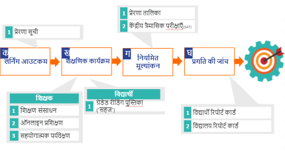 The Mission Prerna program has set out with an objective to attain foundational learning for all its students at the primary level. It has SMART Goals (Specific, Measurable, Achievable, Relevant and Time-bound) in place, which supports the team members to plan their efforts in line with the program vision. For instance, under ‘Prerna Lakshya’, a list of all learning outcomes across grades 1-5 for Language and Maths is provided for clarity.